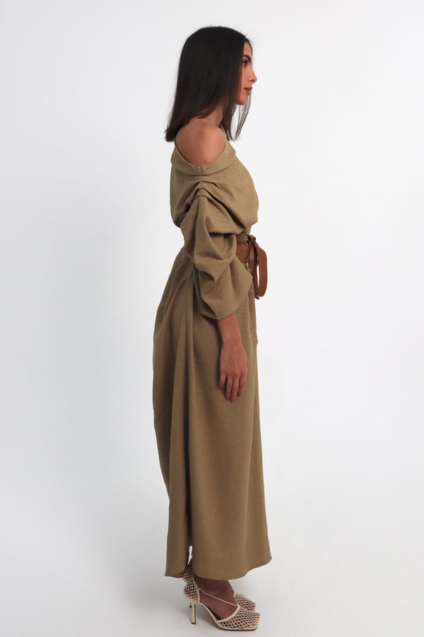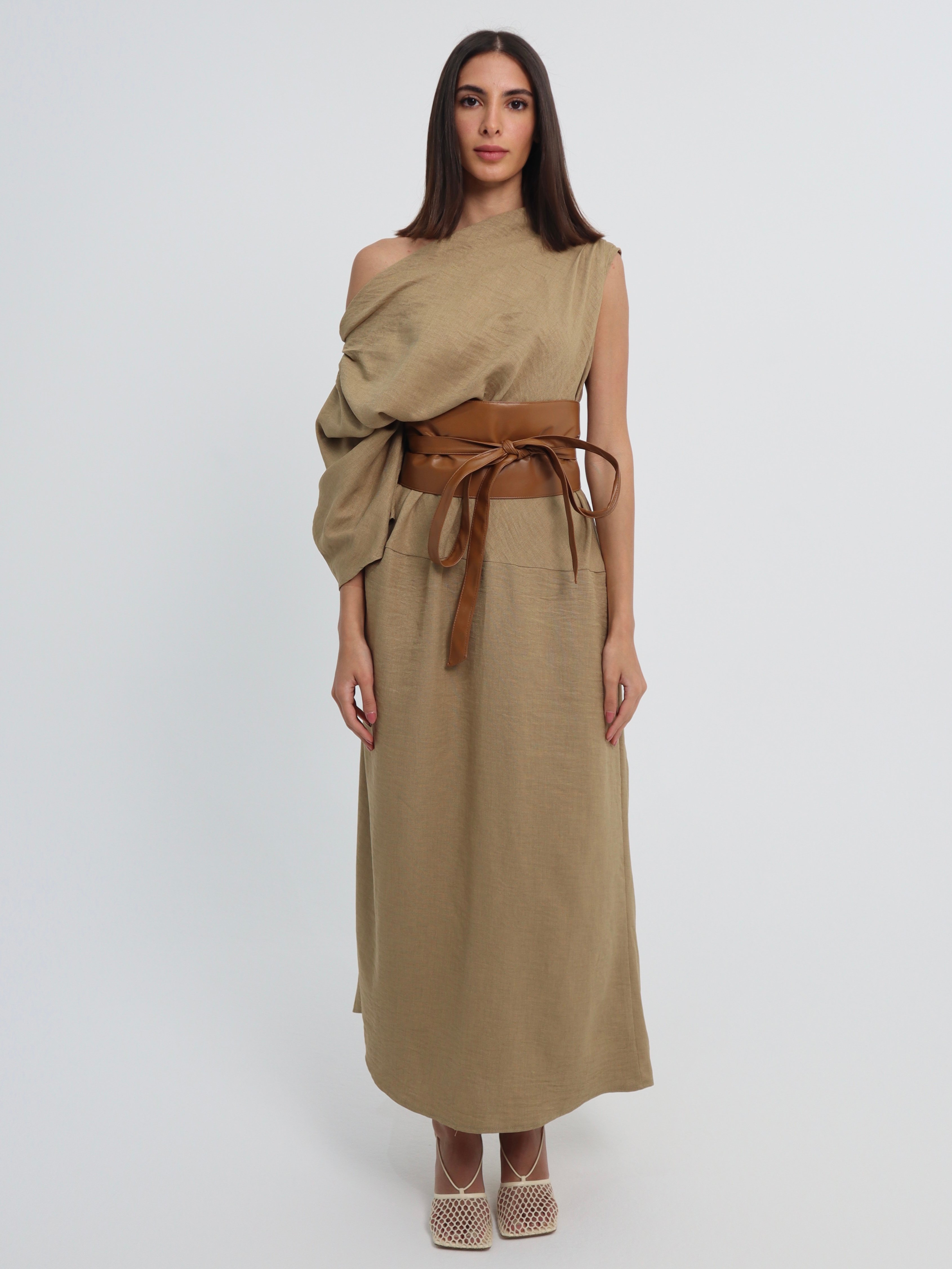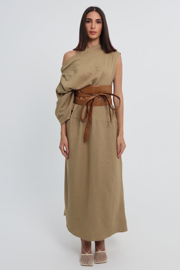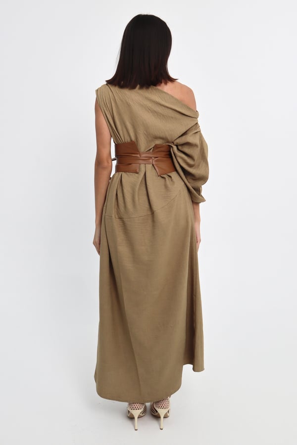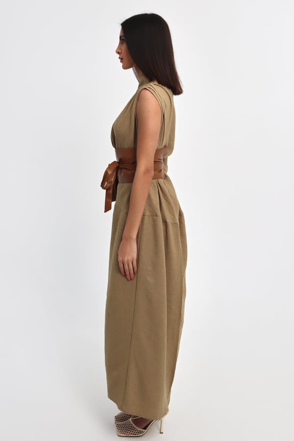 Two piece set: Dress with leather belt.