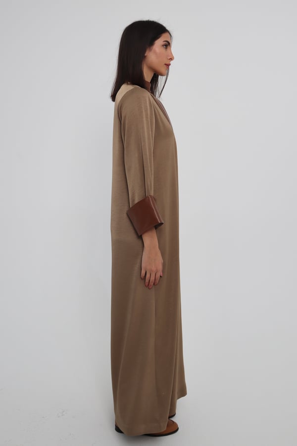 Material: Silk-Cotton with a touch of leather.