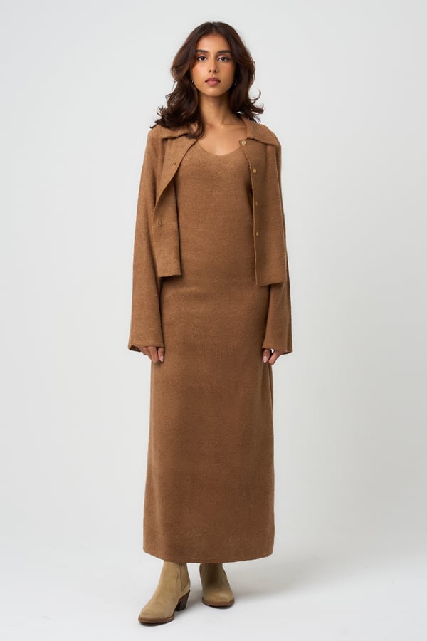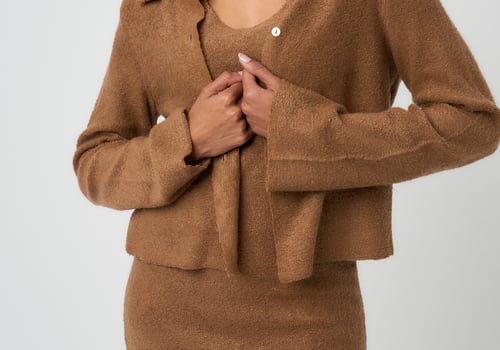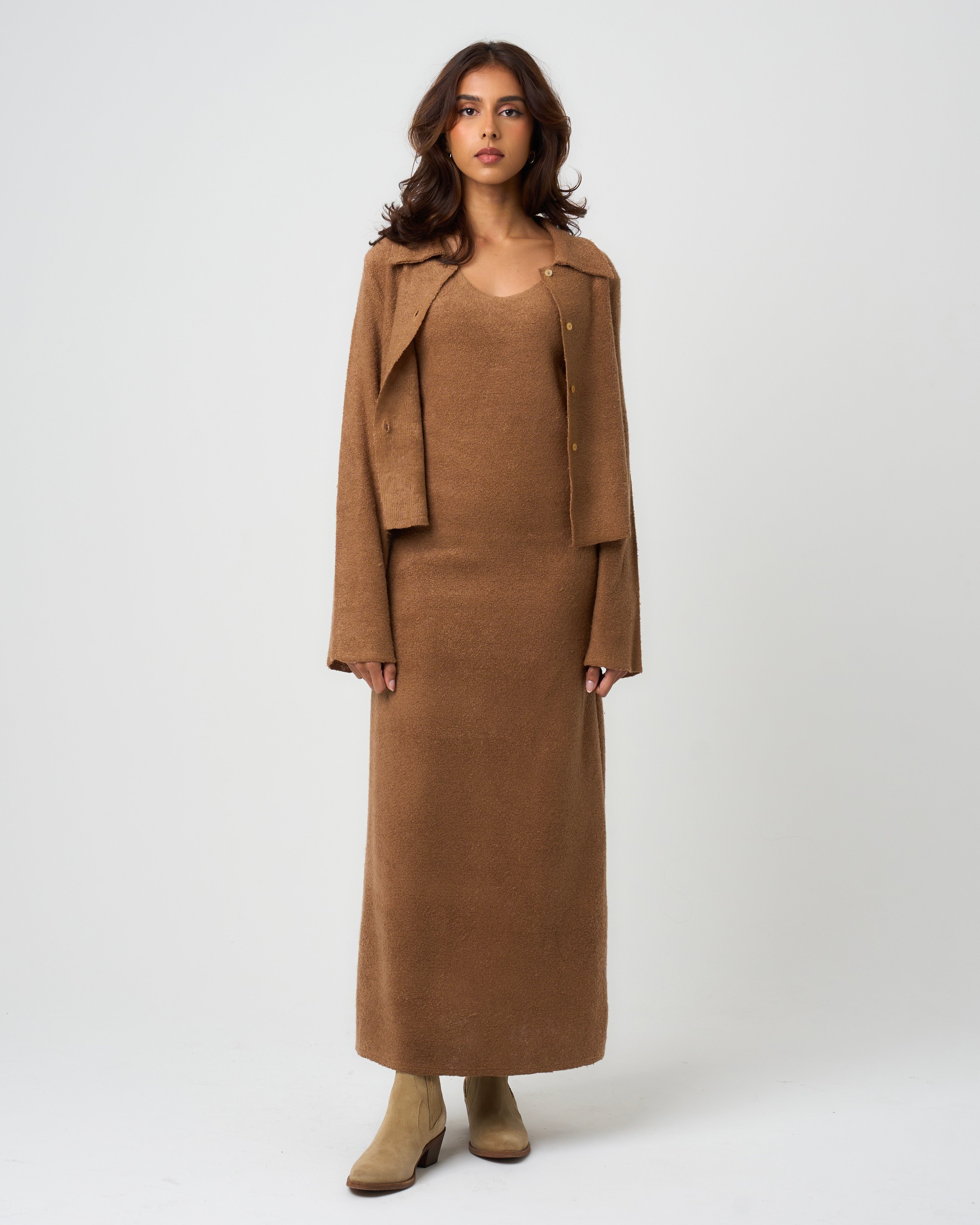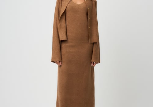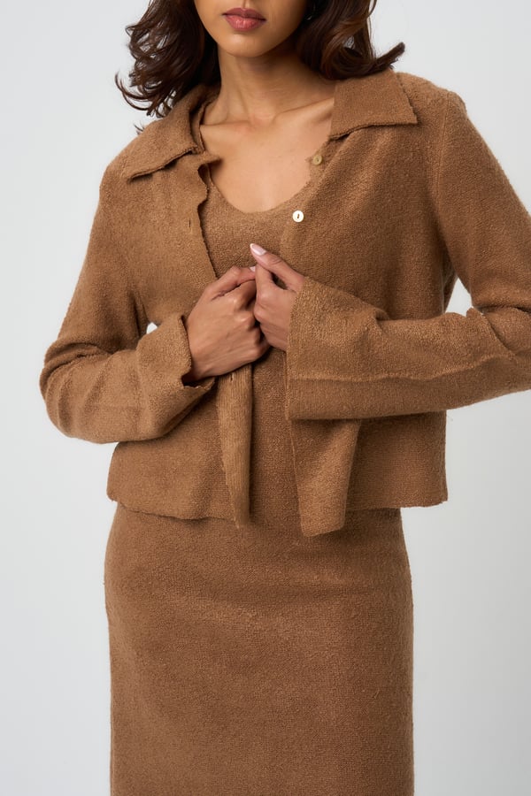 Two piece set: Cropped shirt jacket with matching waisted underdress.